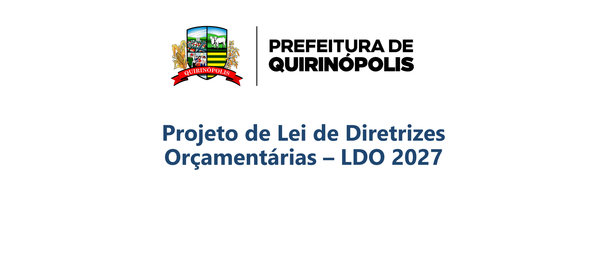 A Prefeitura Municipal de Quirinópolis-GO, convida toda a população para participar da Audiência Pública destinada à discussão e elaboração da Lei de Diretrizes Orçamentárias (LDO), exercício 2027.  A audiência tem como objetivo garantir a transparência da gestão pública e promover a participação popular na definição das prioridades e metas do município.